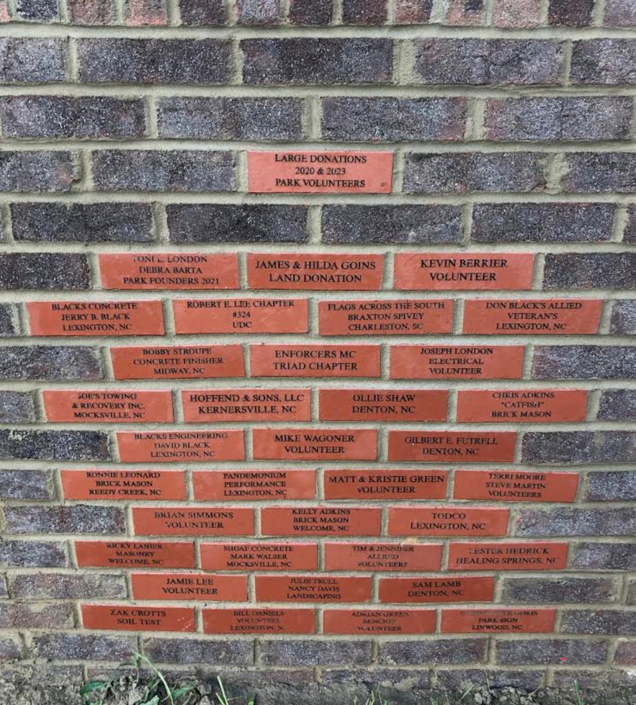 The General William Lee Davidson Veterans Wall honors Veterans of park supporters. You can purchase a brick for your loved one that served or even yourself. The roadside section of the wall is being filled up now. We place the new bricks each Veterans Day.
